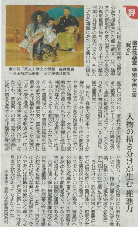●雄資師 「復曲能『武文』」について朝日新聞に掲載されました舞台評を掲載しました