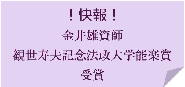 金井先生には、これからも更に素晴らしい舞台をお見せ下さいますよう、そして流儀並びに能楽界の発展のために一層ご活躍されますようお祈りしております。