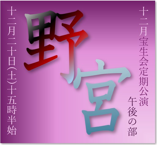 12月20日(土) 十二月宝生会定期公演 「野宮」