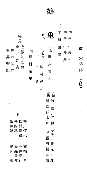 います。その鶴と亀の立テ物をつけた子方二人が健やかな舞を舞い、年頭を