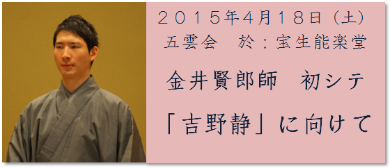 金井先生には、これからも更に素晴らしい舞台をお見せ下さいますよう、そして流儀並びに能楽界の発展のために一層ご活躍されますようお祈りしております。