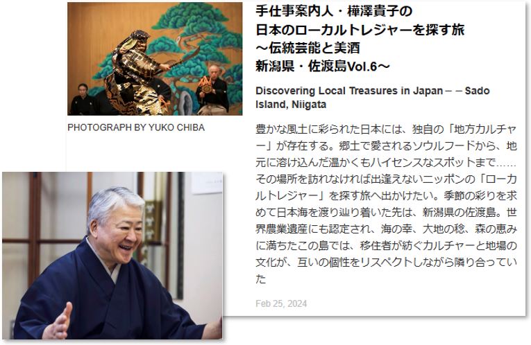 金井雄資師の佐渡での指導、天領佐渡両津薪能についての記事が、『T The New York Times Style Magazine: Japan』ウェブサイトに掲載されました