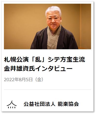 令和四年 九月 五雲能「岩船」に向けた金井賢郎師インタビュー、近日公開です!!